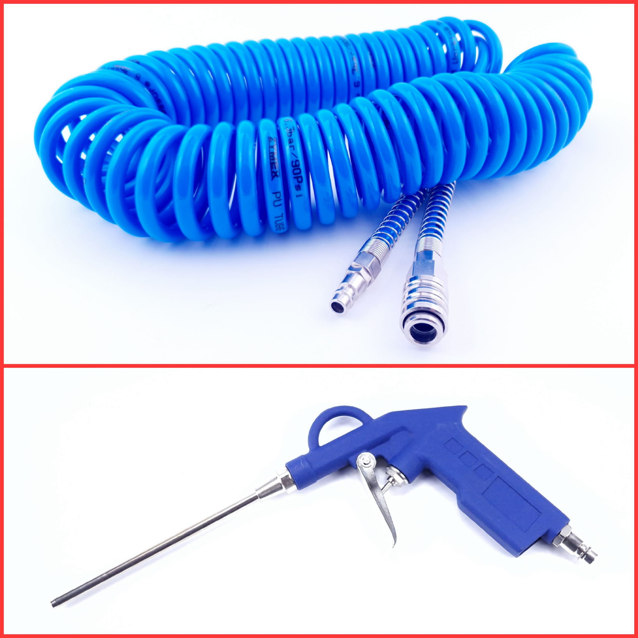 Pistolet do powietrza długi + Przewód spiralny PU (6,5x10) 10 m do kompresorów