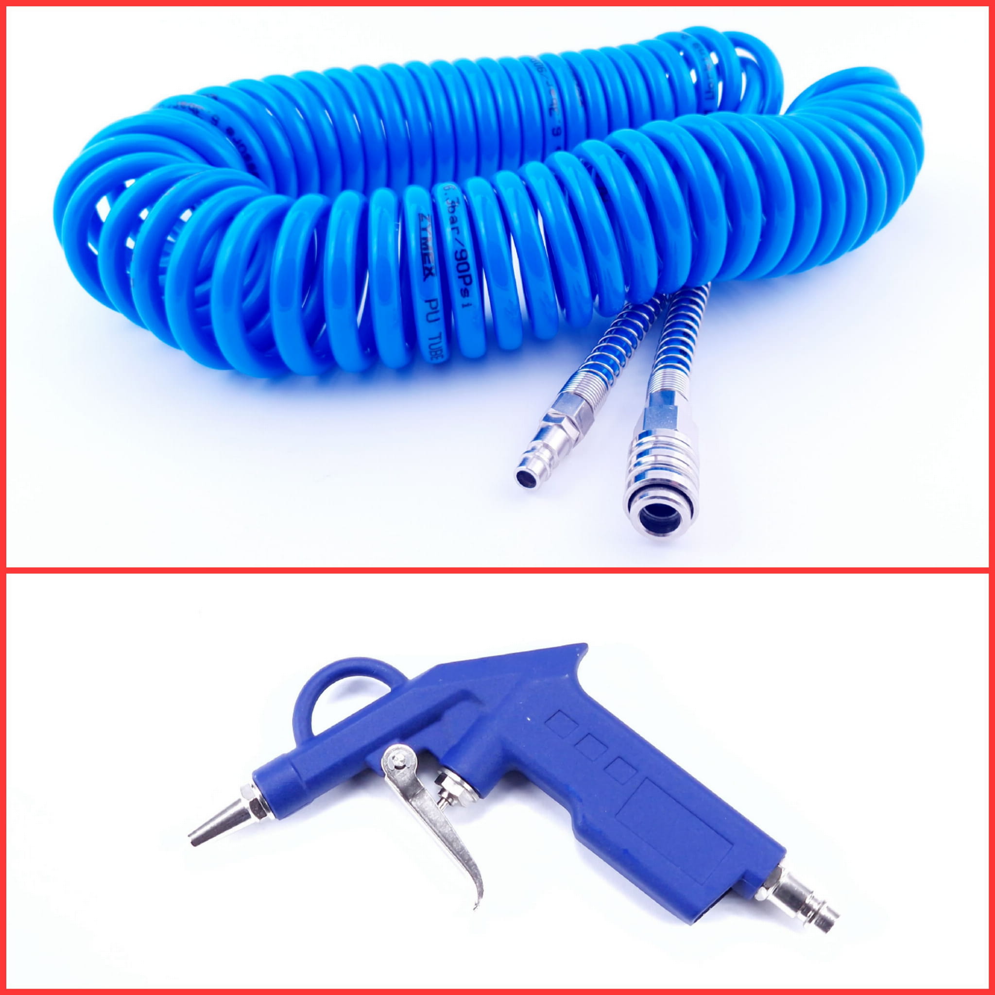 Pistolet do powietrza krótki + Przewód spiralny PU (5x8) 5 m do kompresorów