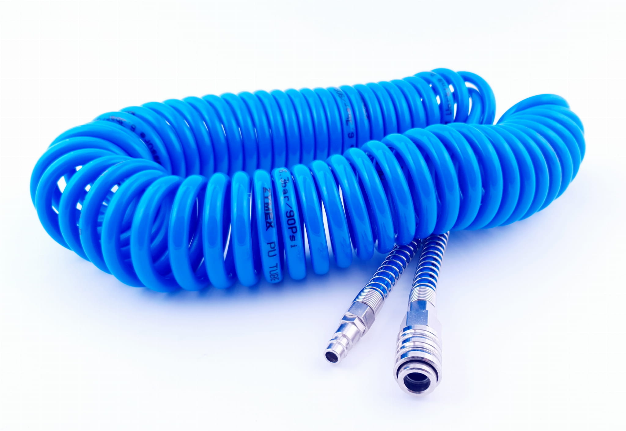 - wąż spiralny z niebieskiego wytrzymałego poliuretanu